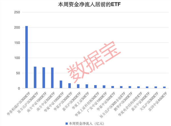 etf市场同样一片繁荣景象。据证券时报·数据宝统计,本周股票型etf(含qdii基金)资本净值猛增,903只基金资产总规模由2.36万亿元飙升至2.75万亿元,增长3846.8亿元。其中,宽基指数etf增长尤为明显,华泰柏瑞沪深300etf、易方达沪深300etf、华夏沪深300etf、南方中证500etf、华夏上证50etf规模分别增长了676.54亿元、391亿元、224.73亿元、207.97亿元、207.33亿元。