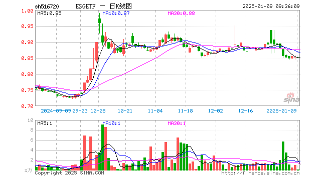 1月9日,esgetf(516720)开盘跌0.12%,报0.851元。esgetf(516720)重仓股方面,贵州茅台开盘涨0.45%,宁德时代跌1.63%,中国平安跌0.08%,招商银行涨0.31%,中信证券跌0.19%,美的集团涨0.15%,长江电力跌0.21%,恒瑞医药涨0.07%,紫金矿业涨0.38%,比亚迪跌0.07%。