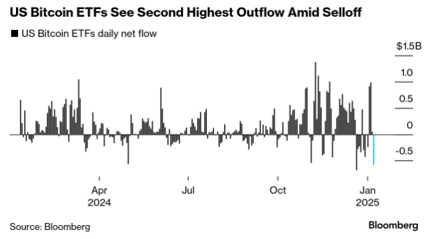 周三,投资者从美国比特币etf中净撤出5.83亿美元,这是该基金自一年前推出以来的第二高流出量。
