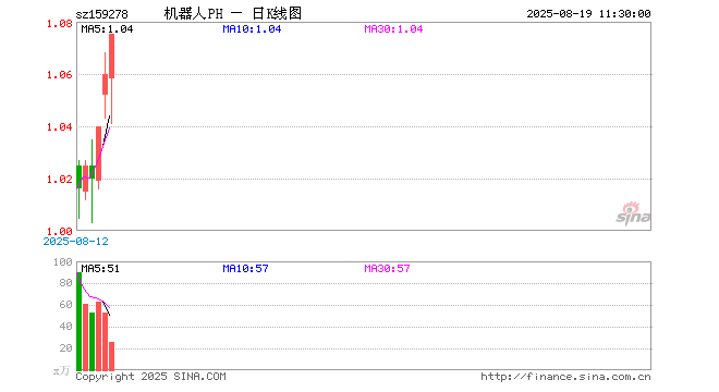 8月19日,截止午间收盘,机器人etf鹏华(159278)涨1.42%,报1.075元,成交额2706.49万元。机器人etf鹏华(159278)重仓股方面,科沃斯截止午盘跌2.59%,石头科技跌1.55%,双环传动涨0.91%,机器人涨1.94%,绿的谐波涨3.35%,埃斯顿涨0.98%,拓斯达涨7.05%,鸣志电器涨2.68%,兆威机电涨2.34%,中大力德跌1.52%。