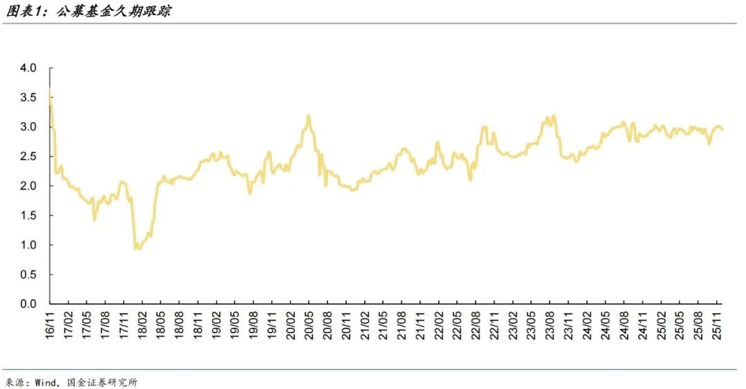 久期下降。11月24日至11月28日,公募基金久期中位值下降0.04至2.96年,处于过去三年70%分位。
