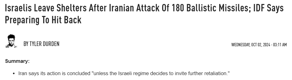 知名金融博客zerohedge报道,伊朗称其行动已经结束,“除非以色列政权决定采取进一步报复”。