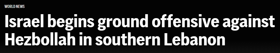 据美联社(ap news)报道,以色列地面部队在当地时间周二凌晨进入黎巴嫩南部,标志着对真主党武装分子的攻势显著升级,并开辟了与伊朗支持的对手长达一年的战争的新战线。