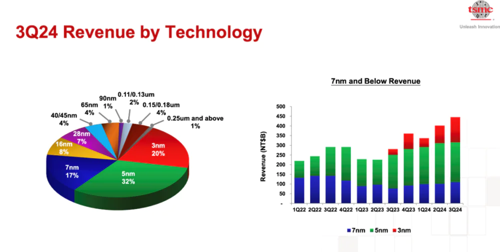 不过据《电子时报》报道,凭借3纳米和5纳米这两个高端制程,台积电有望在前三季度创造约1万亿新台币(310亿美元)的营收。2024年前三个季度台积电的收入总计新台币20 258.5亿元,比2023年同期增长31.9%。